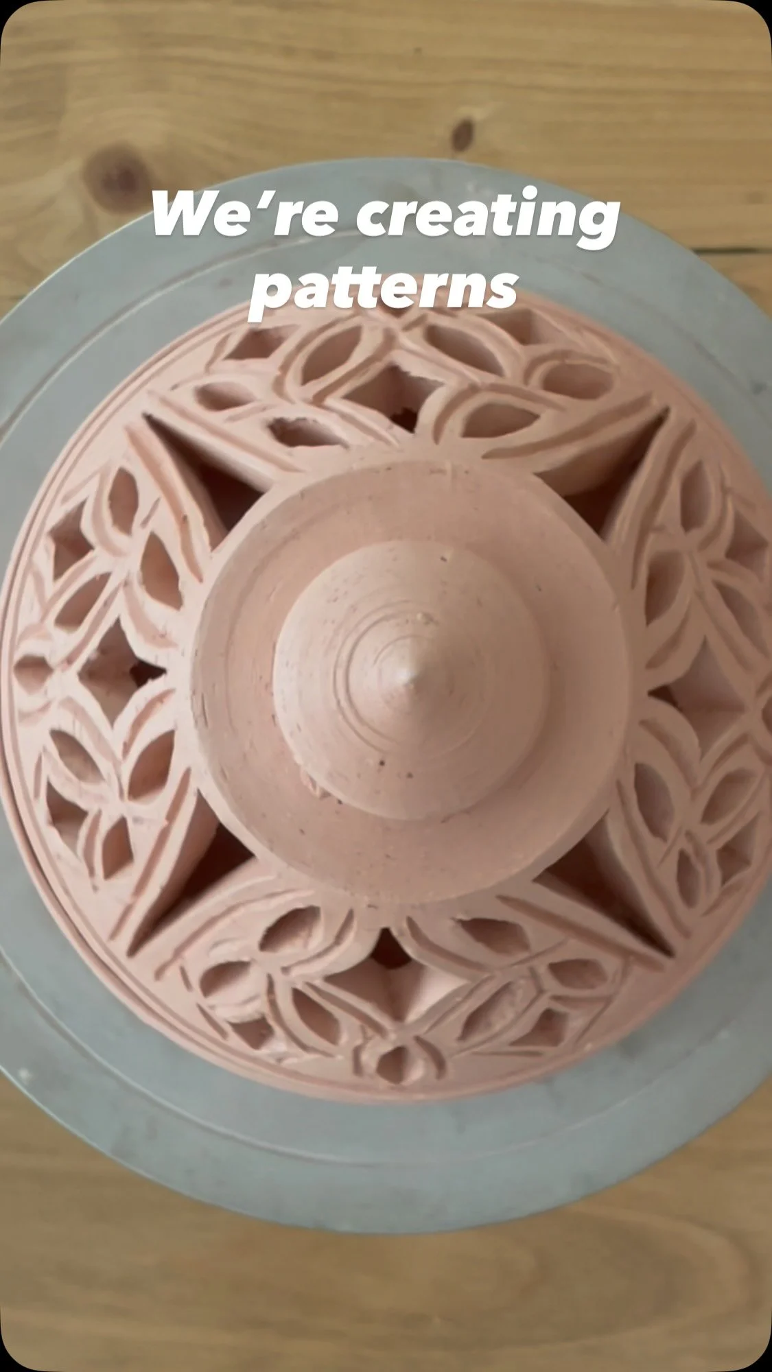 Bukhoor jars - I threw a closed form with brown speckled clay, cut it apart, trimmed to make it into a jar +lid, carved, glazed with ivory glaze. These I plan to start selling closer to Ramadan inshallah. 📝